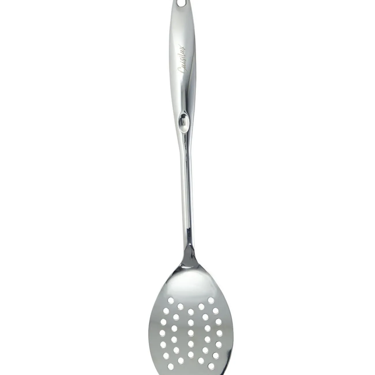 Spatule perforée en inox de la marque Cuisilux, parfaite pour bien faire griller vos viandes par exemple tout en les dégorgant de leurs graisses !
