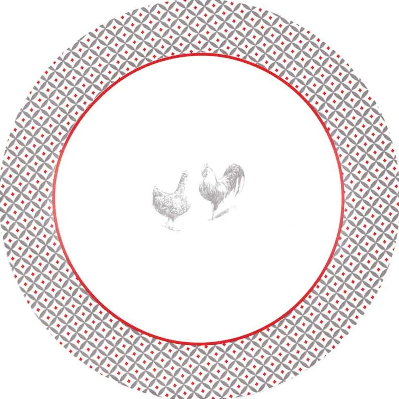 Servez le plat principal ainsi que le dessert tout en gardant assortie votre vaisselle avec ce service design campagne à motifs poule de 12 pièces :