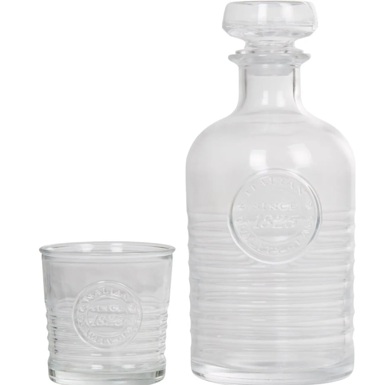 Set composé d’une carafe transparente et 6 verres à rhum de la collection Officina de Bormioli Rocco.