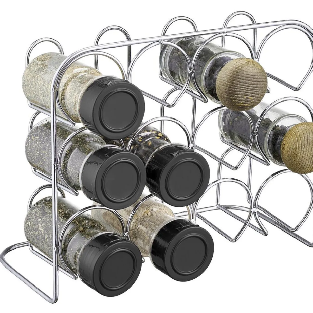 Support en métal pour pots à épices, idéal pour ranger l’essentiel au même endroit.