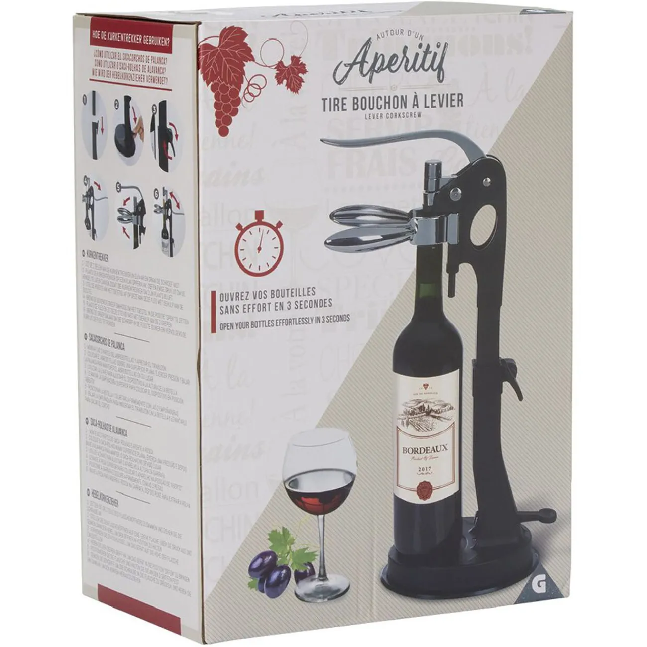 Simple d’utilisation, ce tire-bouchon à levier s’ajuste à toutes les tailles de bouteilles pour les ouvrir rapidement et sans effort.