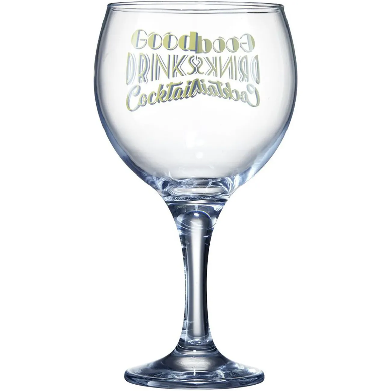 Verre à cocktail transparent décoré avec une inscription en jaune « Good drinks Cocktail ». Parfait pour le Gin et autres cocktails maison.